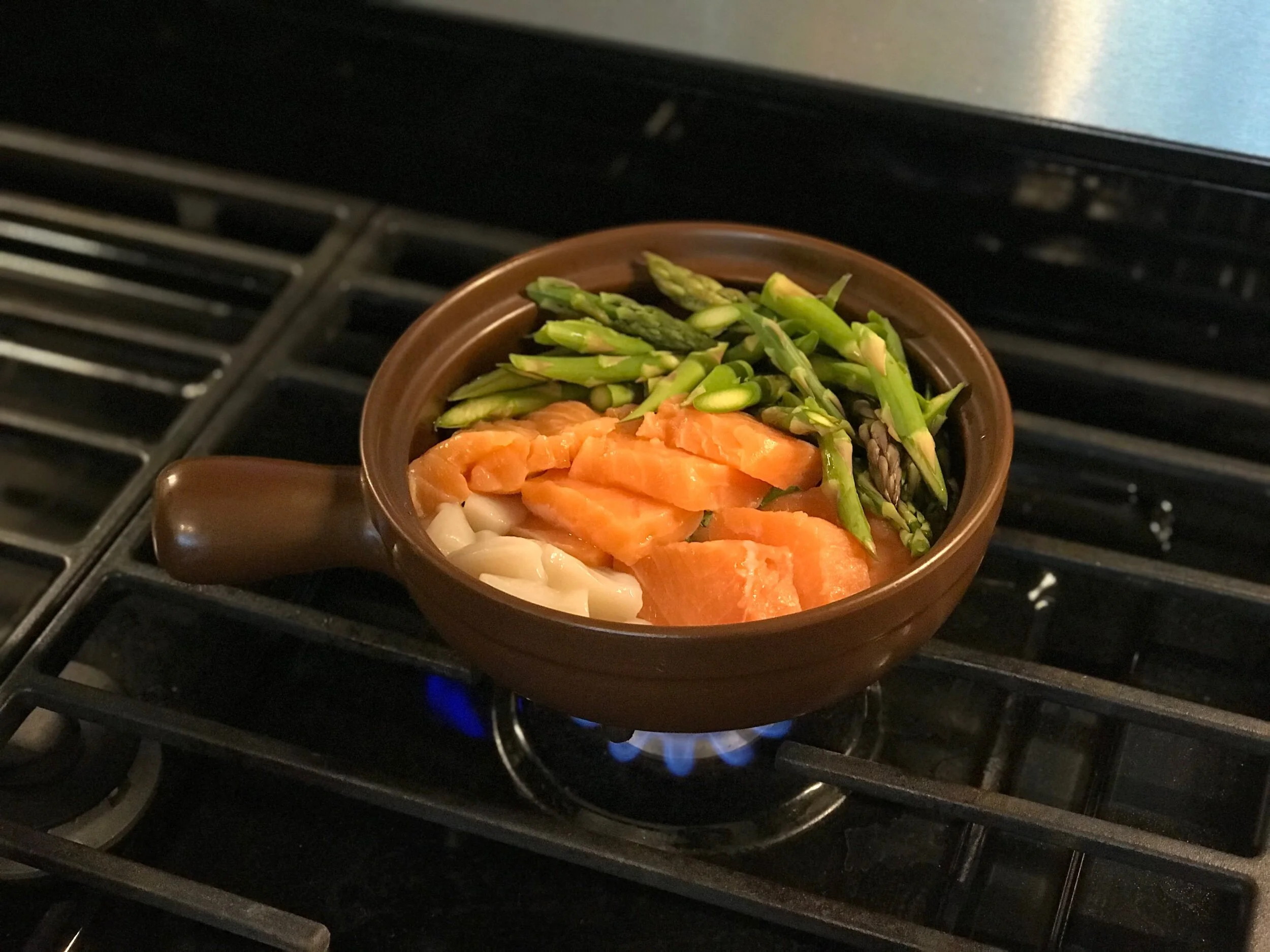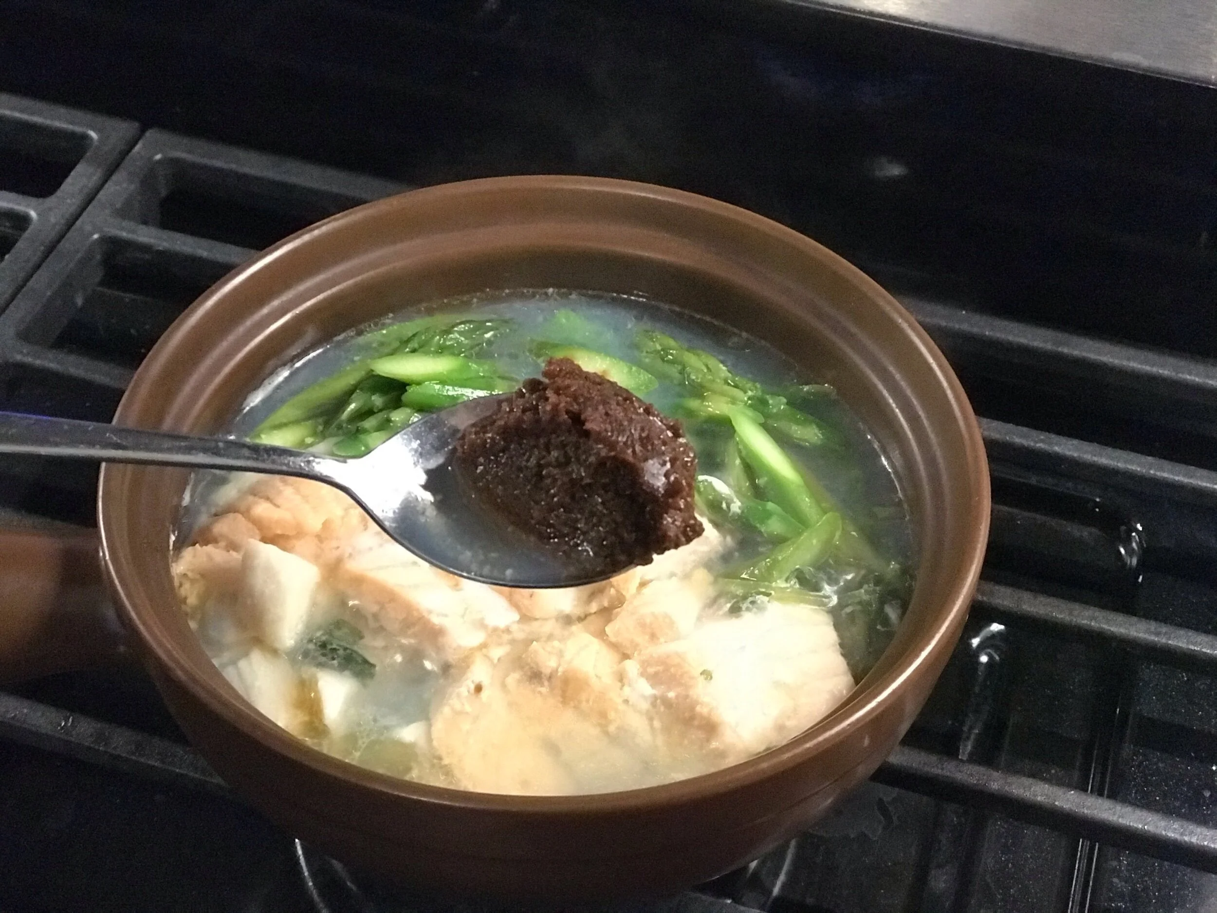 When you run out of cooking ideas, try this one pot miso soup! You can use any ingredient you have, just chop it up and then cook in medium heat. Often I add dumplings too. Instead of miso, I also recommend water + sake for a lighter soup base. Recently I also tried tomato + water as base and add hotpot ingredients for the one pot meal. Quick and easy, and most importantly warm and yummy for a cold day!