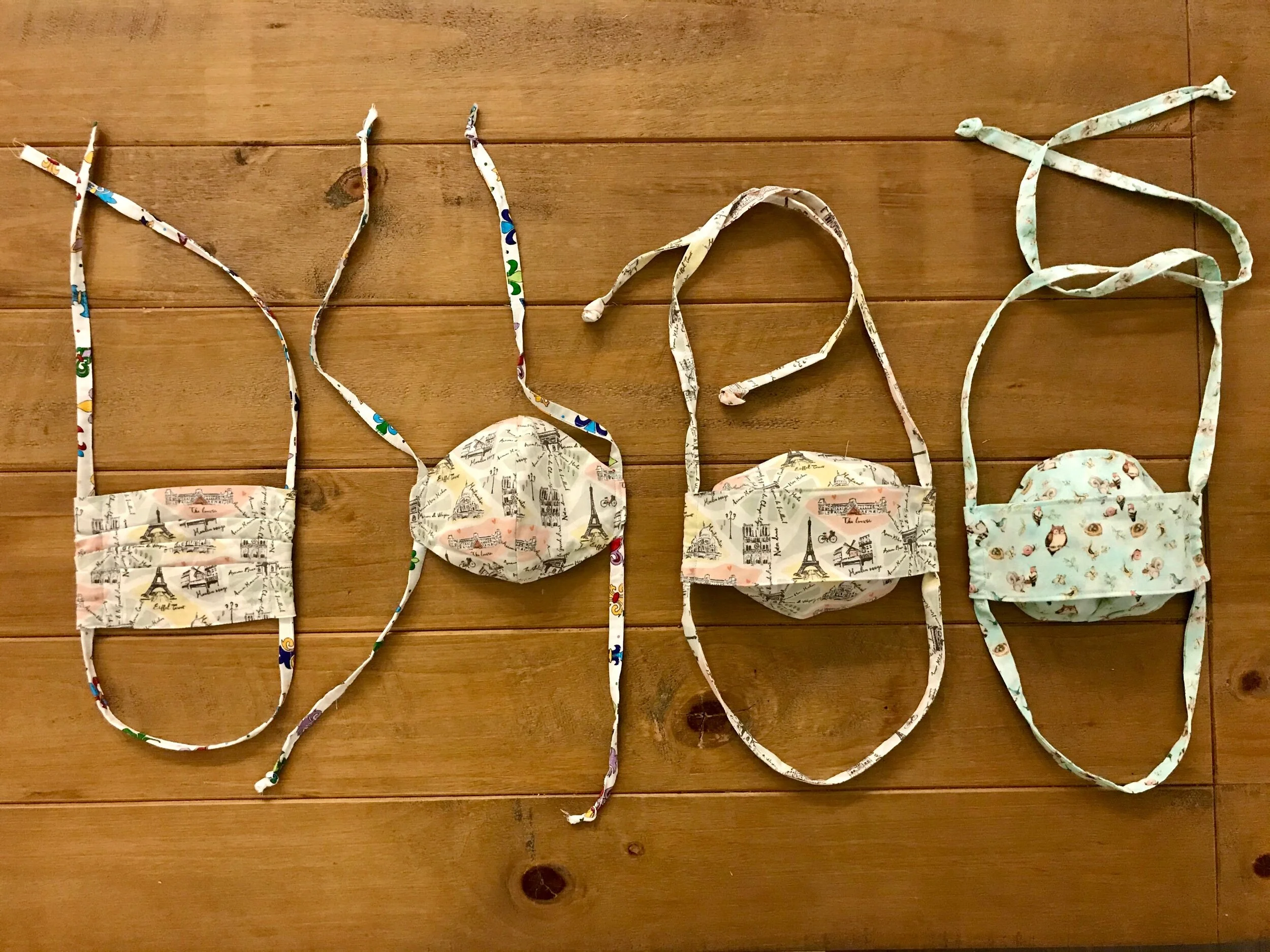 Long fabric ties: Medical masks with elastic ear loops don’t work well for me as it always slides down on my face easily, probably due to my relatively flat face. Longer elastics on N95 masks definitely work better for customizing the angle for tightening. For cloth face masks, I recommend designs with fabric ties so you just tie to your own preferred angle. I figured out that leaving only two open ends would work the best so you can leave mask hang on your neck and then try to adjust the fit by timing the two open ends on the back of your head. Four open ends (like the second one on the left) also work but just one more knot to tie as opposed to having it closed already. A long fabric tie is recommended so you can tie it at a larger angle on your head, the mask doesn’t slide down as easily that way.